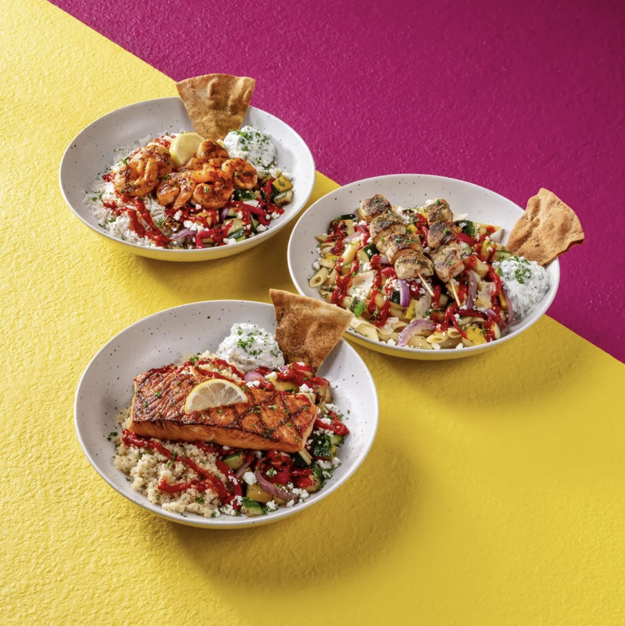 Each Kýpelos bowl features one of three bases — basmati rice, pasta with parmesan or nutrient-rich quinoa — topped with grilled vegetables, feta crumbles, spicy harissa and Taziki’s signature taziki sauce. Guests can complete their bowl with a protein of choice, ranging from chargrilled lamb to marinated chicken kebabs, allowing for a flavor journey tailored to individual preferences and wellness goals.