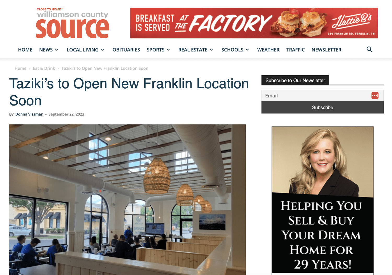 Williamson Source: Taziki's to Open New Franklin Location Soon