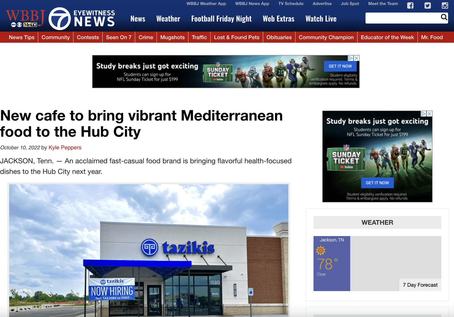 In preparation of the grand opening, the Jackson team will be hiring 20-30 team members for positions ranging from management to entry level. Taziki’s is expected to open in Jackson in early 2023. Click here to learn more and see their food menu.