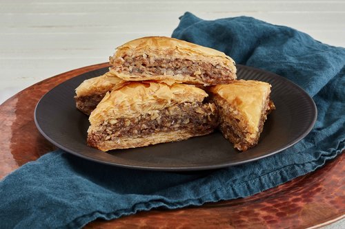 Many countries claim this decadent dessert as their own original creation. Placing origins aside, Baklava today is made differently in every culture. For example, the country of Jordan makes it with pistachios, Lebanon makes it with an orange blossom and rose water syrup, and Israel typically makes it with cinnamon and orange.
